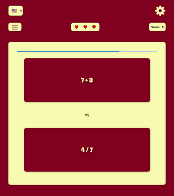 Greater Than: choose the equation with the greatest result before the time runs out.
